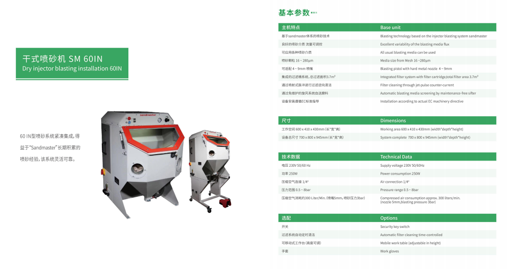 结合超低压喷砂设备主机Sandmaster不同规格型号实现自